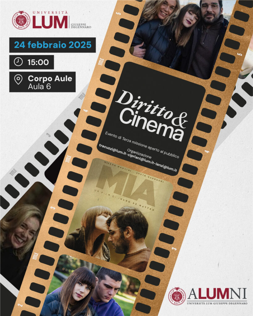 Prosegue la rassegna “Diritto & Cinema”, l’iniziativa di Terza Missione dell’Università LUM “Giuseppe Degennaro” che mette in dialogo il linguaggio cinematografico e la riflessione giuridica, offrendo alla comunità accademica e al territorio un’occasione di confronto su temi di grande attualità.