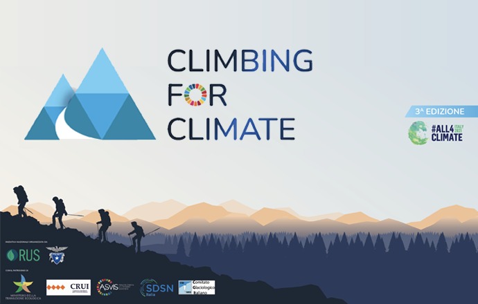 A meno di due mesi dalla Conferenza COP26 delle Nazioni Unite sui cambiamenti climatici, torna con la sua terza edizione l’iniziativa Climbing for Climate organizzata dalla Rete delle Università per lo Sviluppo sostenibile – RUS e dal Club Alpino Italiano – CAI, coinvolgendo gli Atenei italiani aderenti alla RUS in un’azione simbolica e coordinata di sensibilizzazione sulle problematiche del cambiamento climatico (Sustainable Development Goal 13) e della perdita di biodiversità degli ecosistemi (SDG15).