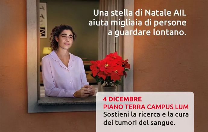 Prosegue la collaborazione tra l’Università Lum e l’AIL (Associazione Italiana contro le Leucemie-Linfomi e Mieloma Onlus). Il 4 dicembre, nell’ambito dell’iniziativa Stelle di Natale AIL,… Leggi tutto