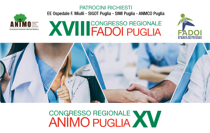 Torna in presenza, dopo quasi due anni, l’appuntamento con la formazione degli internisti pugliesi di Fadoi, che si terrà nei giorni 3 e 4 dicembre nell’aula magna dell’Università LUM di Casamassima (BA). L’evento ha il patrocinio dell’Ospedale Miulli e vede come Presidente Regionale Fadoi il dott. Franco Mastroianni, direttore della U.O.C. di Medicina del nosocomio di Acquaviva.