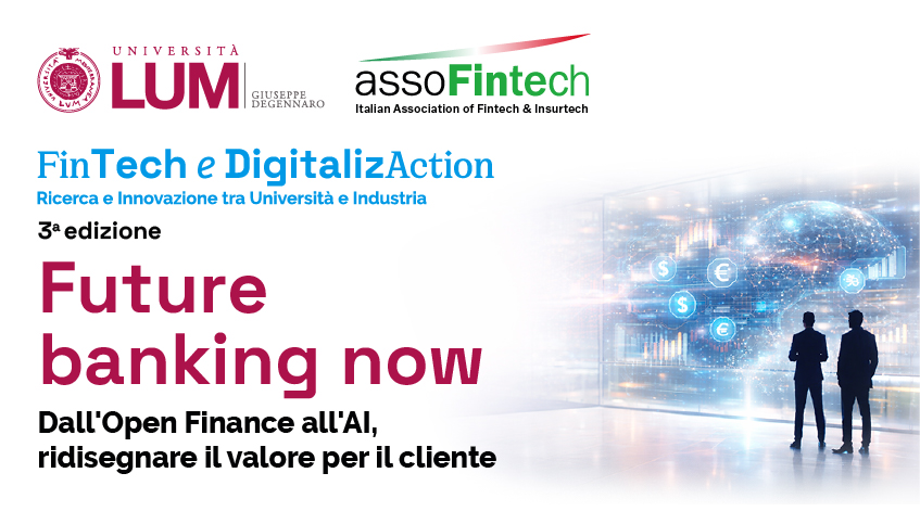 Venerdì 20 febbraio 2026, a partire dalle ore 15.30, l’Aula Aldo Rossi del Campus LUM ospiterà la terza edizione di “FinTech e DigitalizAction – Ricerca e Innovazione tra Università e Industria”, l’appuntamento promosso dall’Università LUM “Giuseppe Degennaro” in collaborazione con Assofintech – Italian Association of Fintech & Insurtech.