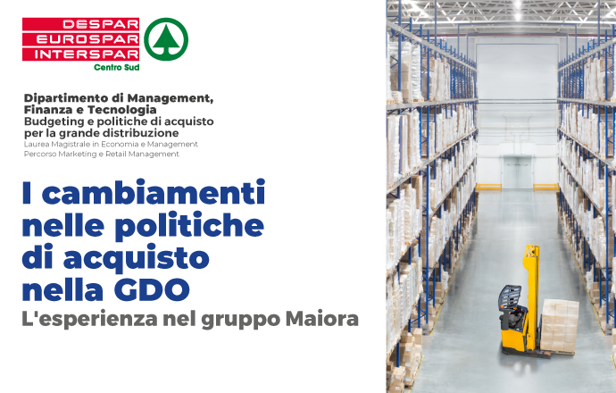 Nell’ambito della Cattedra di Budgeting e politiche di acquisto per la grande distribuzione (Percorso Marketing e Retail Management del Corso Laurea Magistrale in Economia e Management) giovedì 18 novembre dalle ore 14 è un oprogramma un webinar dal titolo: “I cambiamenti nelle politiche di acquisto nella GDO. L’esperienza nel gruppo Maiora”.