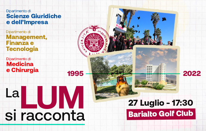 “La Lum si racconta” è il titolo della giornata organizzata dall’Ufficio Orientamento e Placement in programma mercoledì 27 luglio alle ore 17.30 presso il Barialto Golf Club.