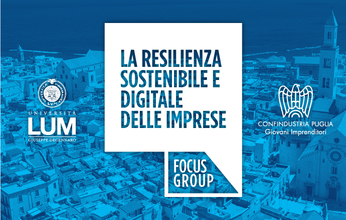 La resilienza sostenibile digitale delle imprese è il titolo del focus group che vedrà coinvolti la Lum e Confindustria Giovani Bari-Bat, in programma mercoledì 9 febbraio presso il Golf Club Barialto.