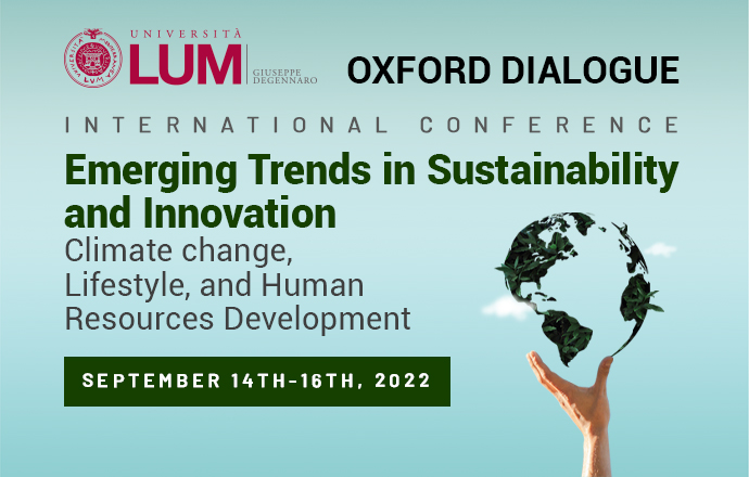 The LUM – Oxford Dialogue Conference will be held on 14, 15 and 16 September 2022 in Italy at the LUM University. Various topics will be addressed on innovation, sustainability and cooperation between universities and business, etc. . In short, the conference will start with a round table between speakers and entrepreneurs, followed by the different presentation sessions of each paper.