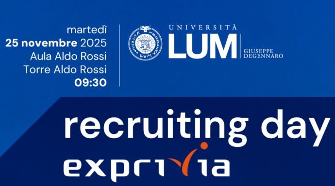 Martedì 25 novembre 2025, alle ore 09:30 presso l’Aula Aldo Rossi della Torre Aldo Rossi, l’Università LUM Giuseppe Degennaro ospiterà il Recruiting Day Exprivia, una mattinata dedicata all’incontro tra studenti, neolaureati e una delle principali realtà italiane nel settore della trasformazione digitale.
