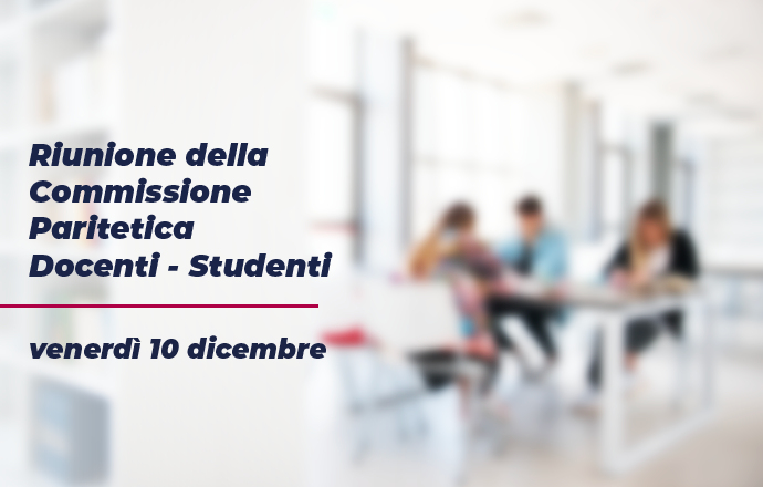 Venerdì 10 dicembre è in programma una riunione della Commissione Paritetica Docenti-Studenti aperta a tutti gli studenti iscritti al Dipartimento di Management, Finanza e Tecnologia.